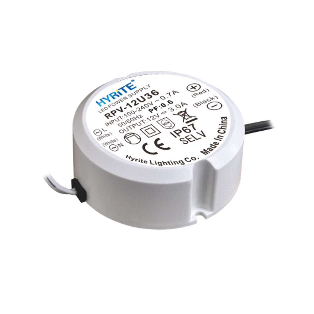 HYRITE RPV-24U36, kruhový LED napájecí zdroj 36W/24V, IP67, ø=55mm, do krabičky